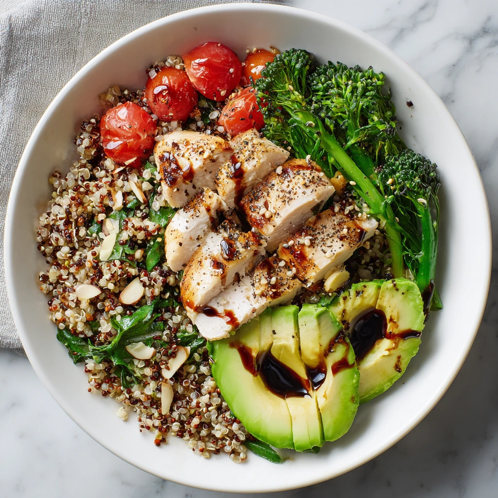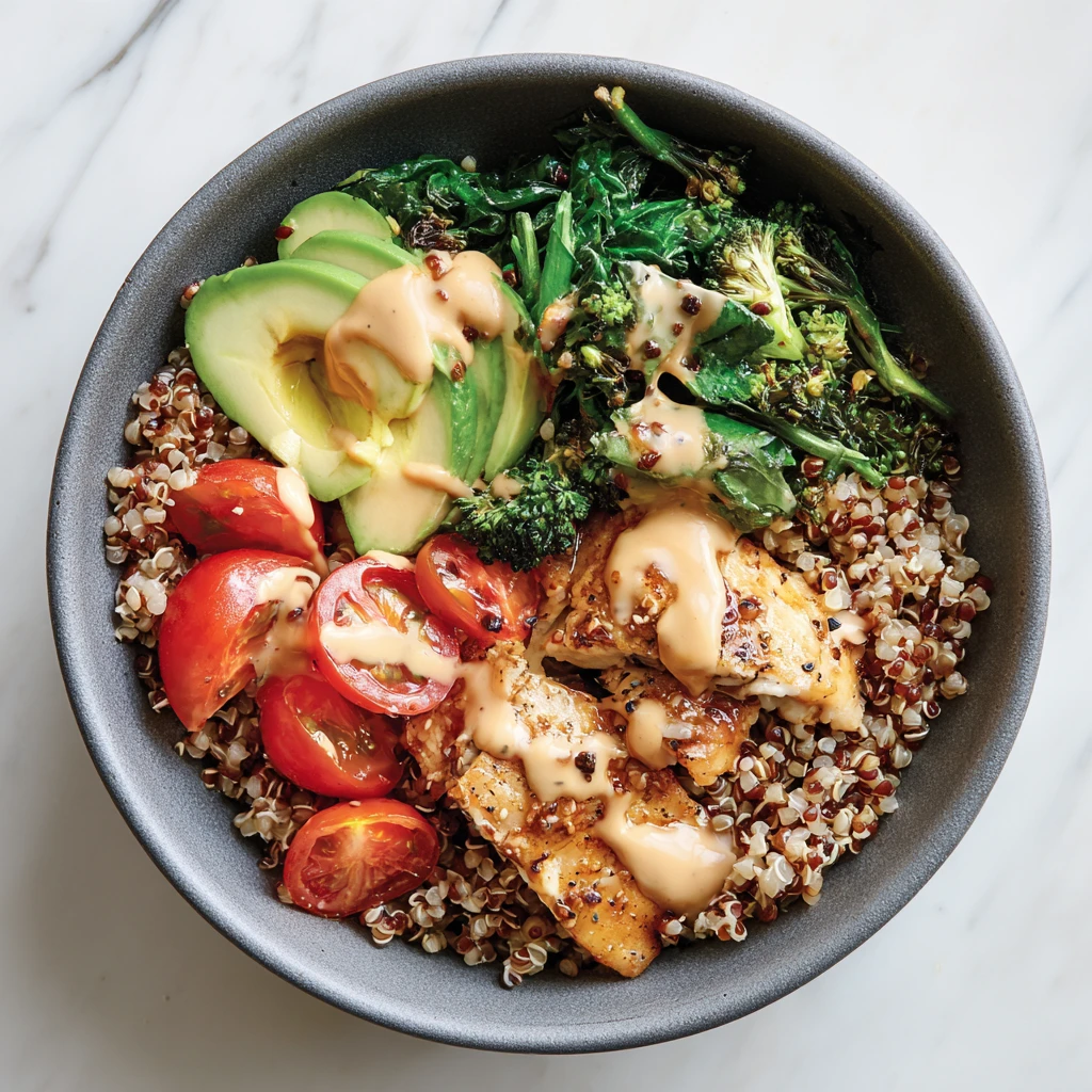 Combine cooked quinoa, grilled chicken or chickpeas, chopped cucumbers, tomatoes, red onion, Kalamata olives, and feta cheese. Drizzle with a lemon-herb vinaigrette. This bowl is packed with protein, healthy fats, and fresh vegetables.