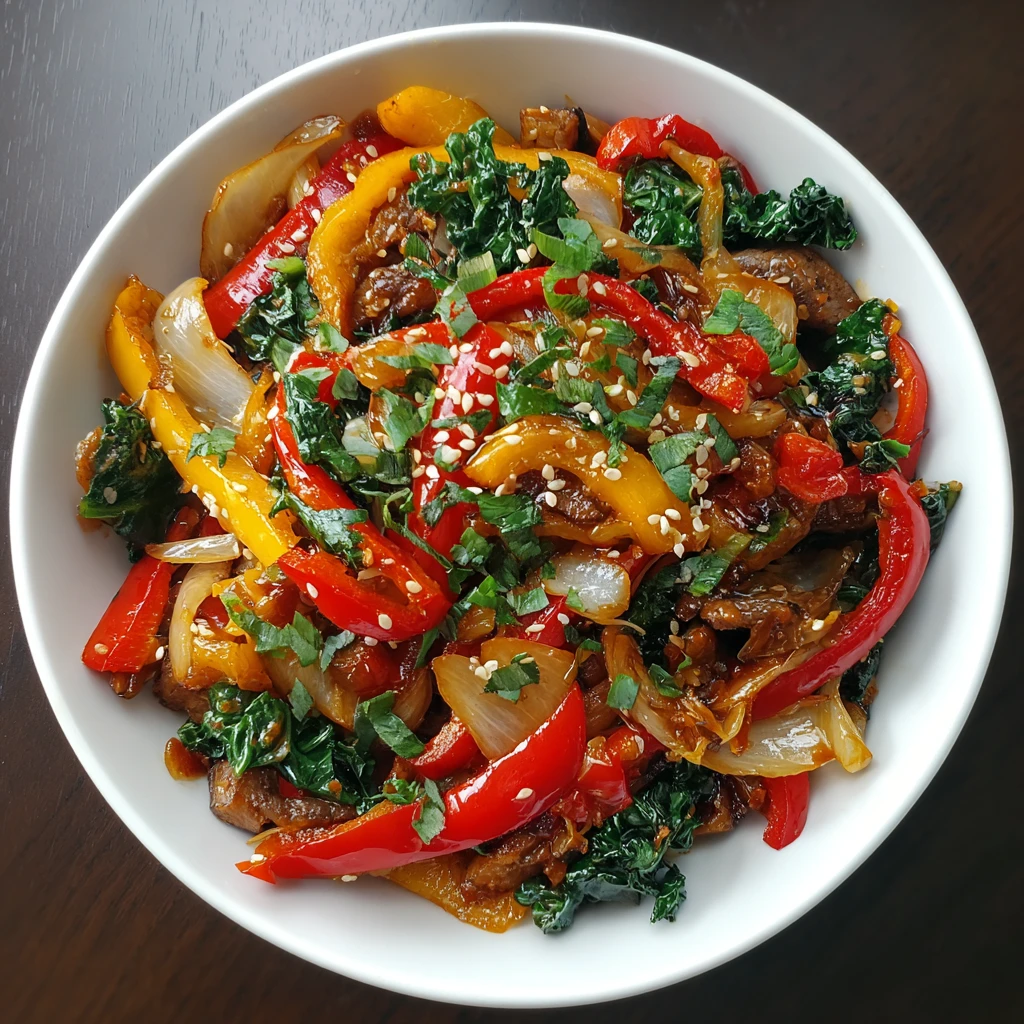- Vegetables: Sliced bell peppers (red, yellow, and green), sliced onions.