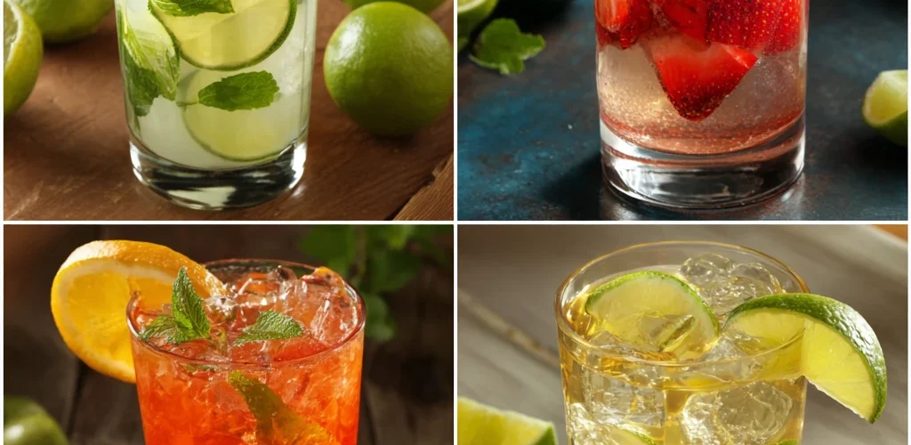 - Start with a Base: Choose a liquid base such as sparkling water, club soda, kombucha, or coconut water.