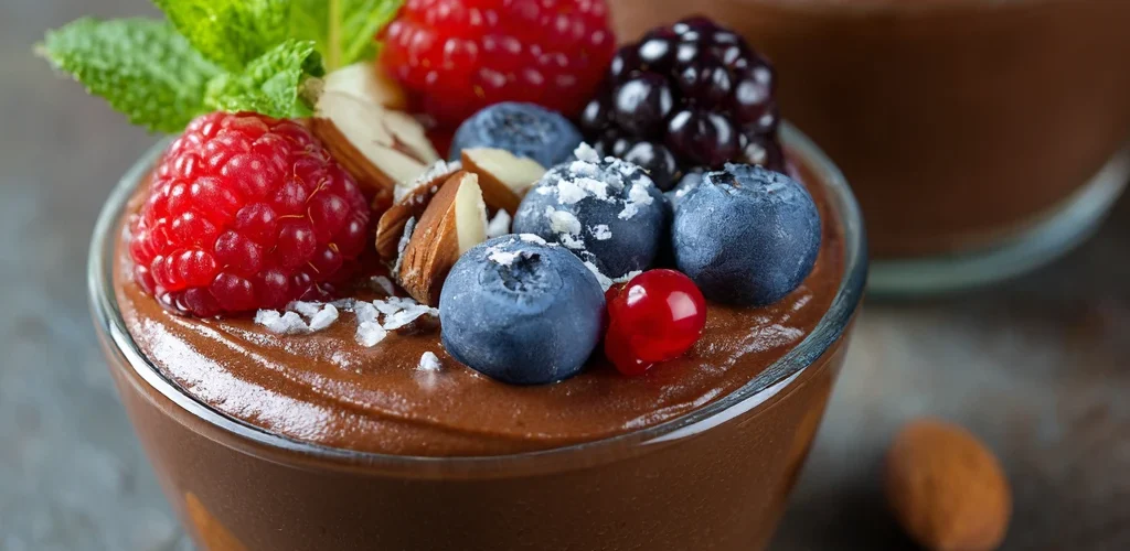 Fruits, dark chocolate, Greek yogurt with healthy toppings, homemade trail mix, and chia seed pudding are all excellent options.