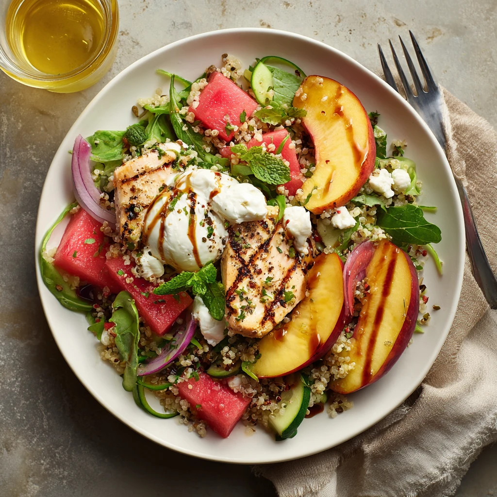 This salad is a symphony of sweet and savory flavors. Grilling the peaches brings out their natural sweetness, while the creamy burrata adds a luxurious touch. A drizzle of balsamic glaze ties everything together.